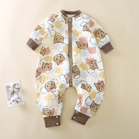 2025 가을 신상품 유기농 면 아기 잠옷 긴팔 점프 수트 4 계절 아기 잠옷 가정 옷